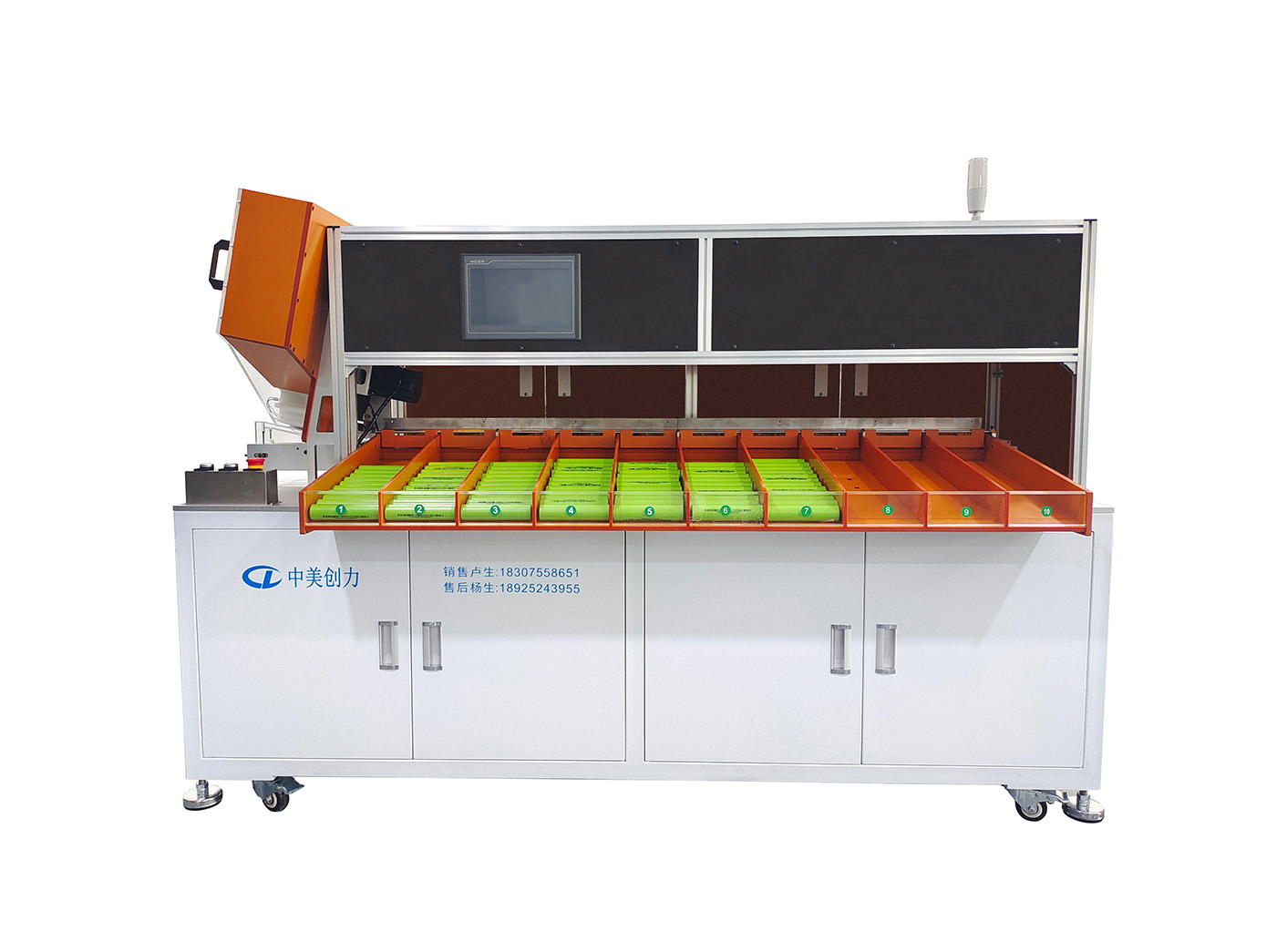 10檔通用電池分選機(jī)是一款用于圓柱電池的內(nèi)阻、電壓等參數(shù)的測(cè)試分選設(shè)備,自帶高精密內(nèi)阻、電壓自動(dòng)測(cè)試系統(tǒng),該設(shè)備根據(jù)在人機(jī)界面軟件上設(shè)定的內(nèi)阻、電壓值精確的將電池送入到指定檔位,系統(tǒng)最多可實(shí)現(xiàn)10檔(9個(gè)OK檔,1個(gè)NG檔)分選。此設(shè)備每小時(shí)可測(cè)試配組電芯4500支左右,且結(jié)構(gòu)設(shè)計(jì)簡(jiǎn)潔大方,性能穩(wěn)定。在市場(chǎng)上,是性?xún)r(jià)比很高的一款分選設(shè)備之一。